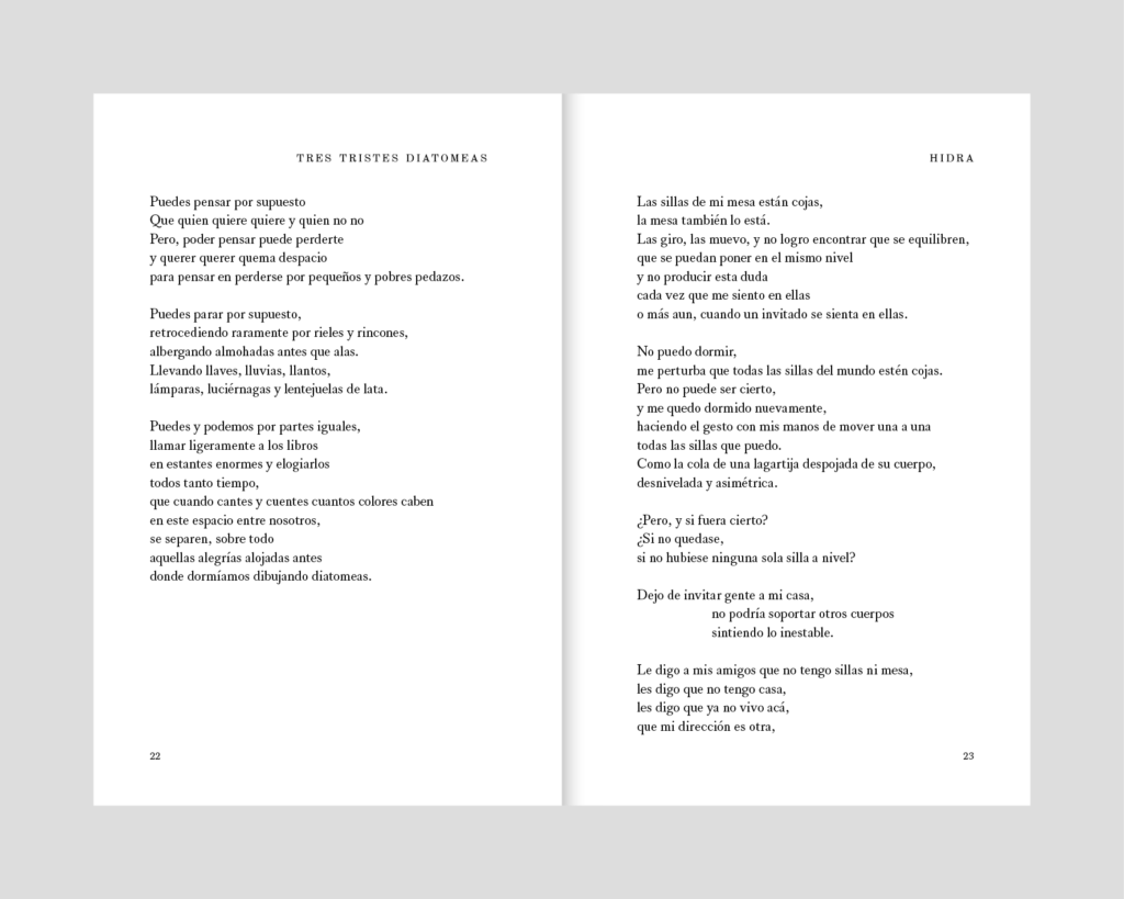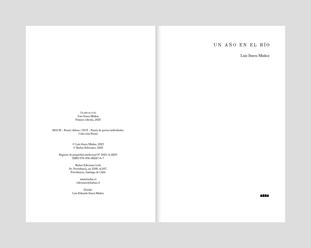 “Un año en el río” es un poemario que articula una exploración de la memoria personal y colectiva a través de un imaginario marcado por la naturaleza y lo doméstico, empleando un tono introspectivo y meditativo. Su emocionalidad se caracteriza por una melancolía activa, donde el hablante no se limita a lamentar la pérdida, sino que la asimila como una condición inherente al vivir. Las imágenes poéticas recurren a elementos naturales —árboles, ríos, insectos, estaciones— combinados con objetos cotidianos —mesas, herramientas, gestos familiares— que funcionan como metáforas de estabilidad, fragilidad o cambio. Utilizando recursos formales como repeticiones, tipografía fragmentada y secuencias sensoriales. el autor busca generar un ritmo que refuerze la experiencia de tránsito entre el recuerdo y el presente. La estructura del libro propone un viaje que alterna momentos de contemplación estática con desplazamientos emocionales, donde la identidad del hablante se construye en la interacción con su entorno y su historia. Así, la obra plantea una reflexión sobre el vínculo entre tiempo, memoria y percepción, situando al yo poético como un sujeto que se sabe efímero pero inserto en un cauce mayor.